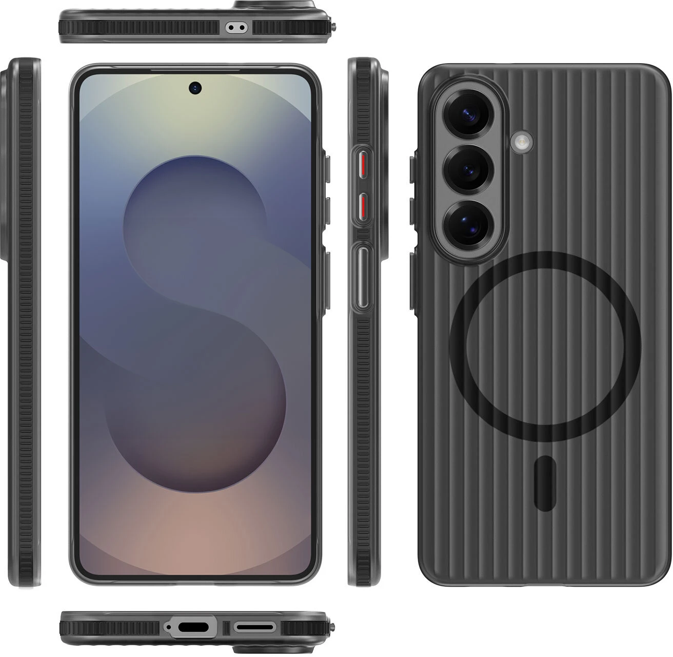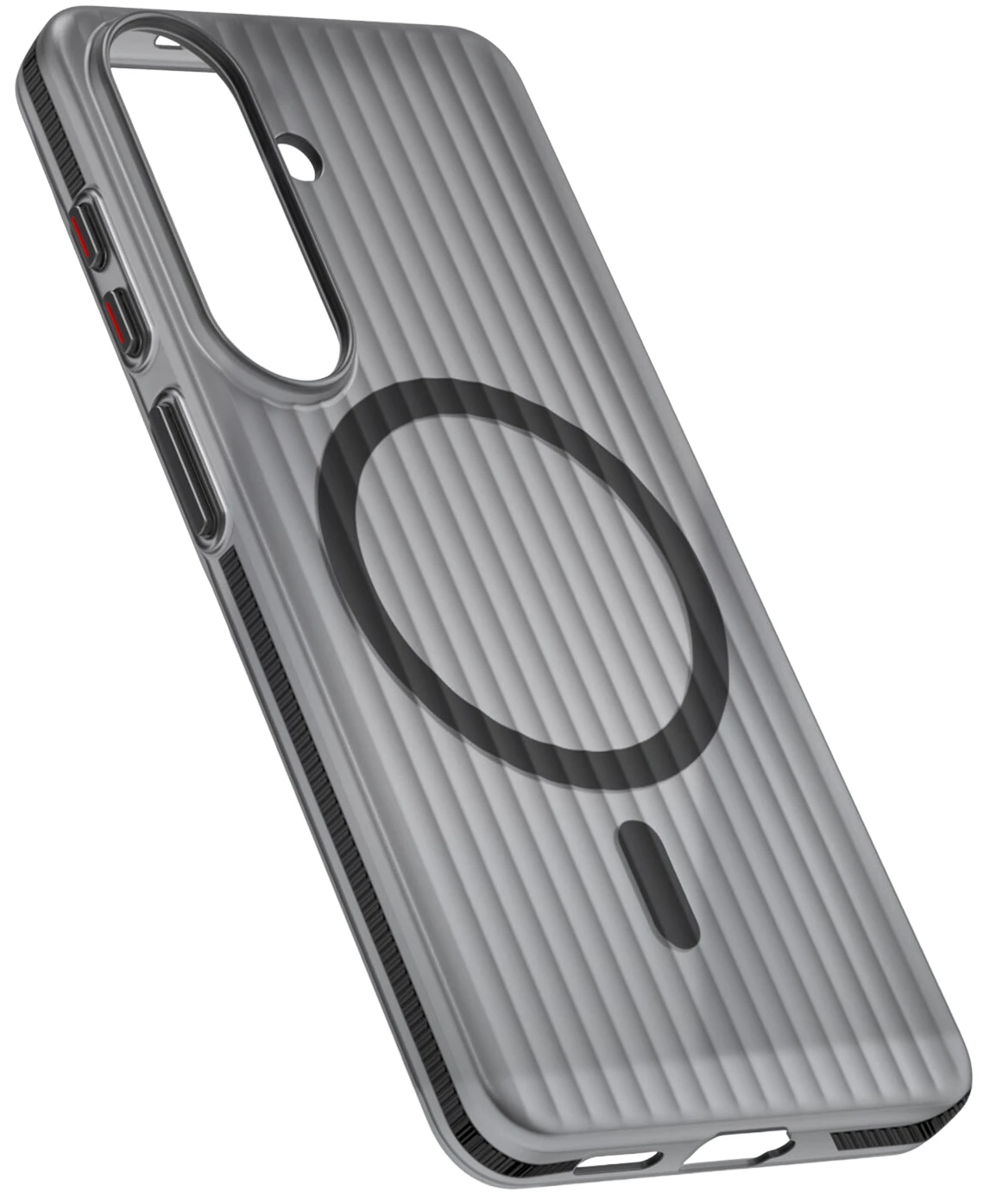 Das 4smarts Aero Riffel-Design Case für Samsung Galaxy S26+ kombiniert minimalistisches Design mit hochwertiger Funktionalität – inspiriert vom ikonischen Look edler Aluminium-Reisekoffer.